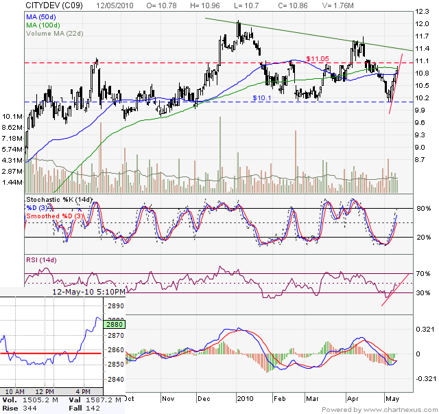 Important Resistance of CityDev: $11.05